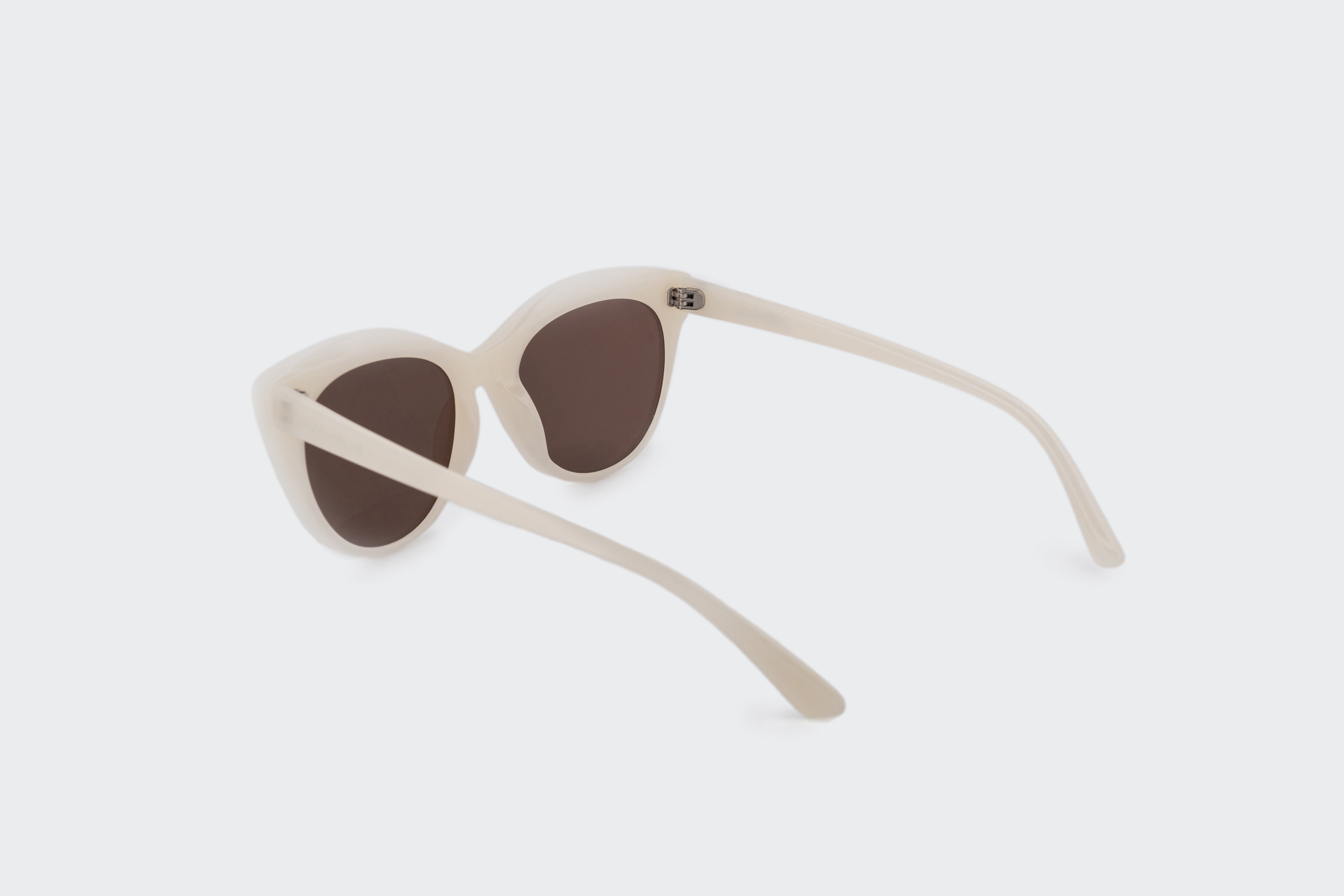 わずかに持ち上がったトップラインが顔の輪郭をすっきりと見せる。リベットディテールと流れるような曲線美が、ヴィンテージな雰囲気とエレガントさを際立たせる。フェミニンでありながら独自のシルエットが、どんな場面でも視線を引きつける。